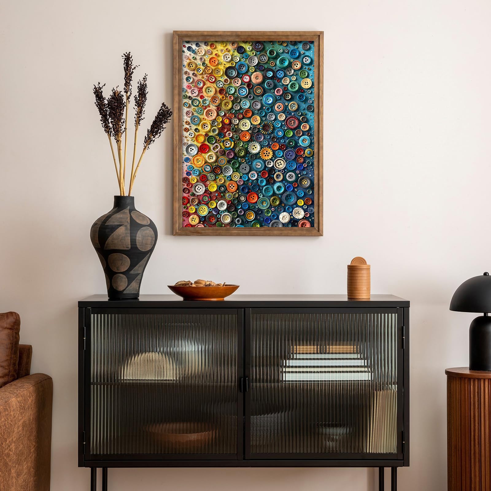 【Home Decor】The vibrant colors and layered button elements not only catch the eye but instantly brighten up any space. Whether hung in the living room, bedroom, or study, it will become a unique focal point, showcasing your artistic taste and lifestyle.