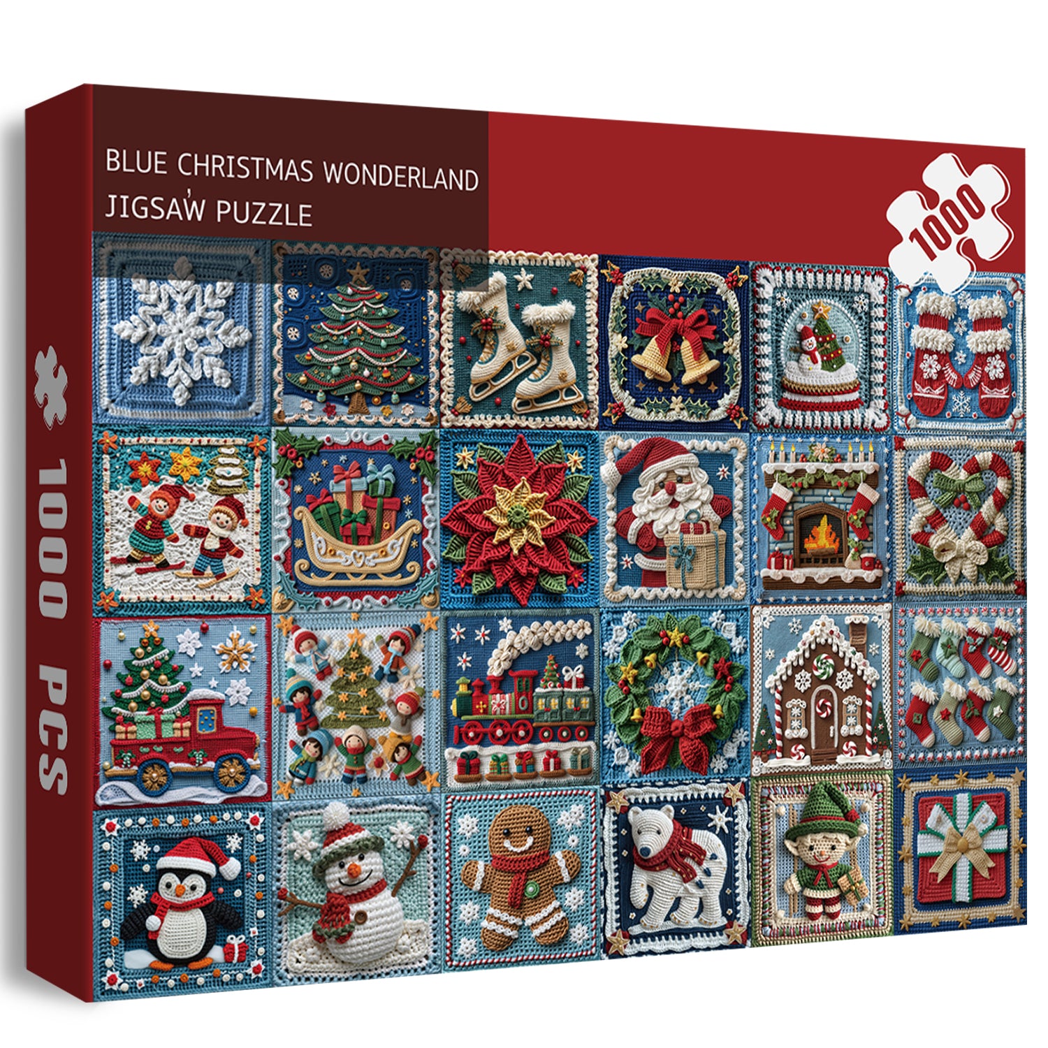 🎄❄️【Blue Christmas Wonderland Jigsaw Puzzle】: Each square tells a heartwarming story: a twinkling Christmas tree, a steaming train, a gingerbread man with a sweet smile🍪, and Santa Claus preparing to deliver presents! The festive atmosphere washes over you, like opening a fabric Christmas picture book🦌.