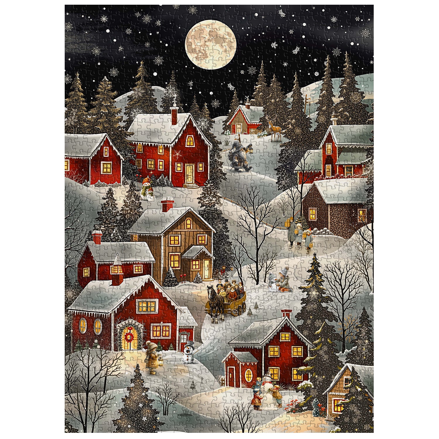 Snowy Night Village Jigsaw Puzzle 1000 Pieces