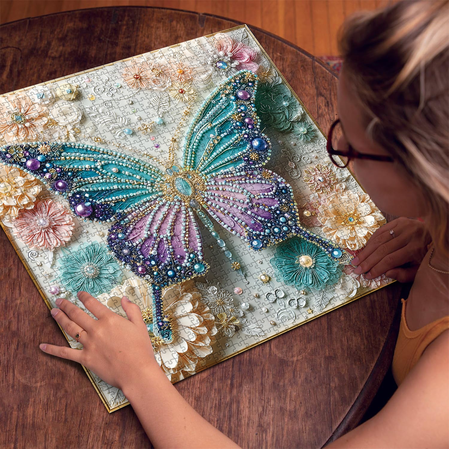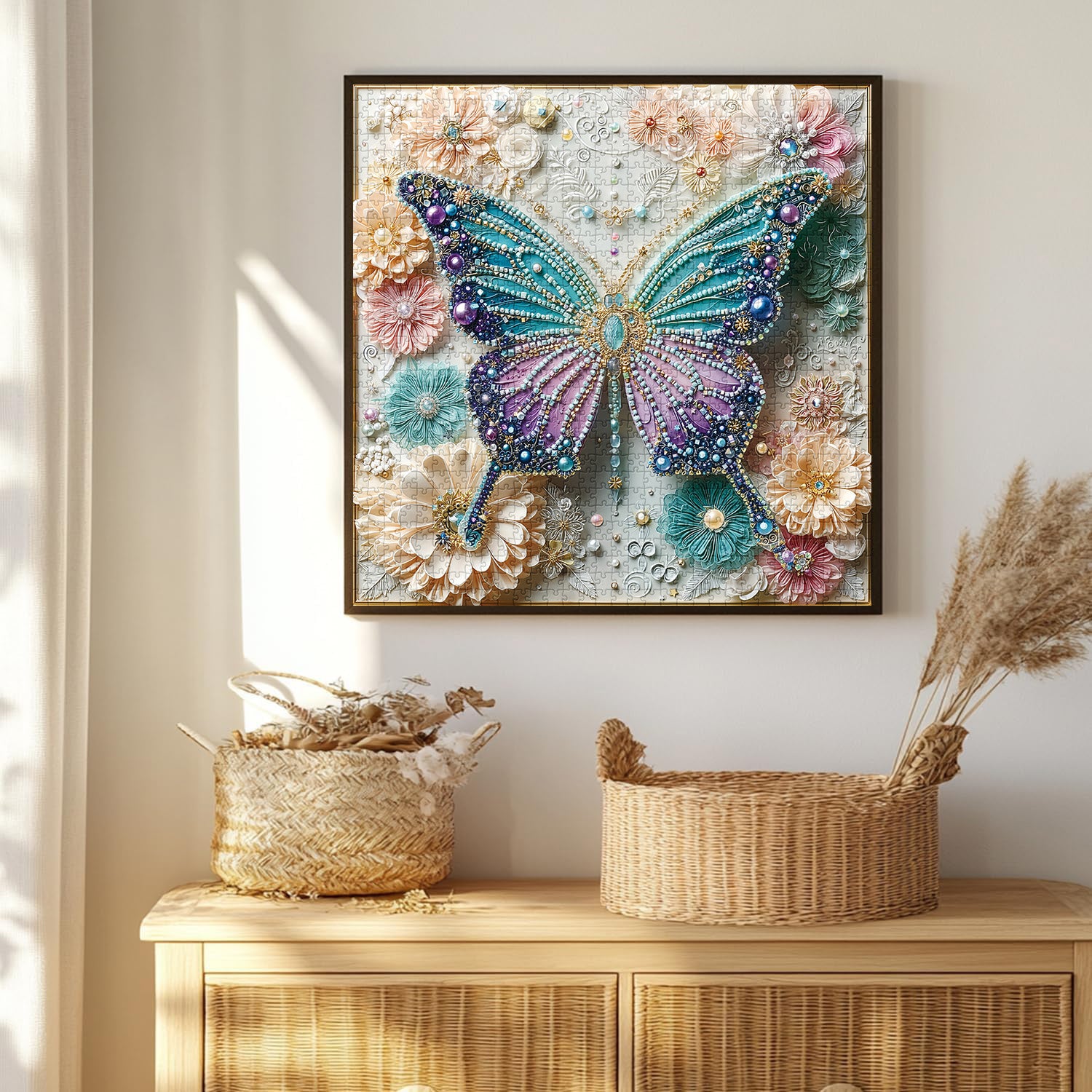 🧩【Product Specifications】: 1000 pieces total, finished size: 23.9 × 23.9 inches, includes a high-resolution reference image. The butterfly wings and pearlescent details are rich, perfect for quietly enjoying the exquisite assembly of each piece.