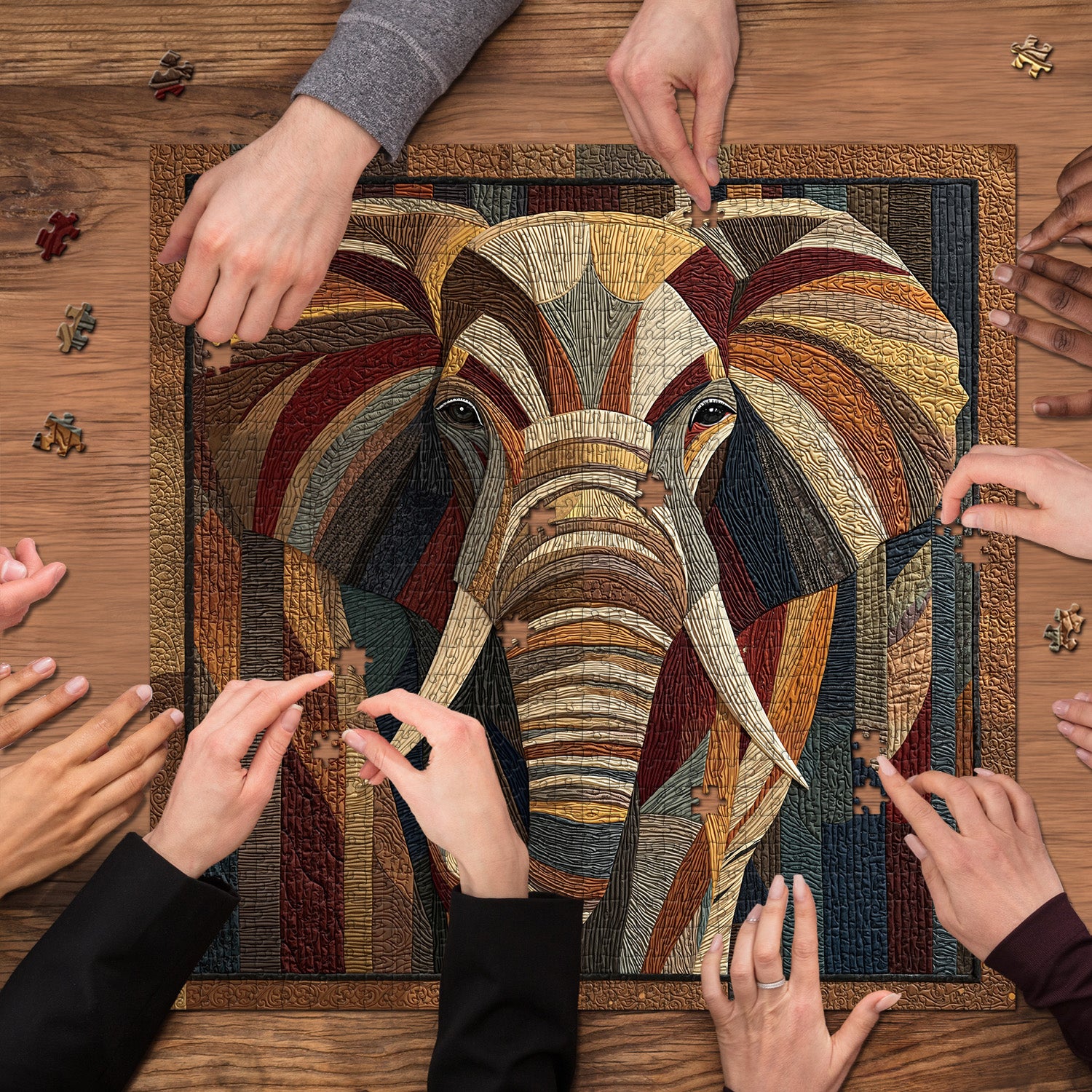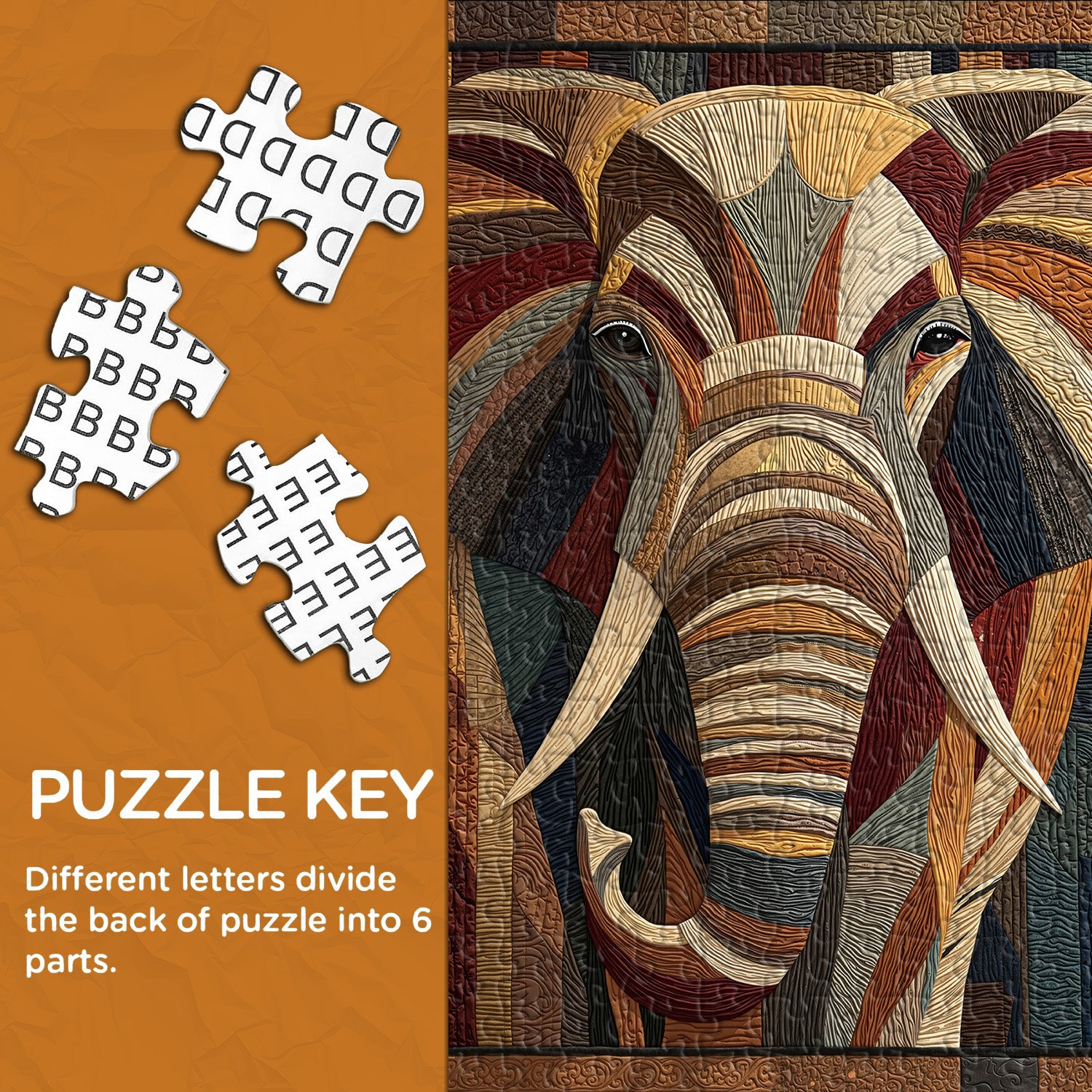 🐘✨【Elephant Mosaic Jigsaw Puzzle 】: Thick, warm color blocks intertwine to outline a majestic and powerful elephant. The elephant symbolizes wisdom, strength, and protection, presented in the form of patchwork art, both primal and wild, yet imbued with human warmth. Like the breath of the earth, the texture is as stable as the rings of a tree; every stitch engages in a profound dialogue with the power of nature. 🌍