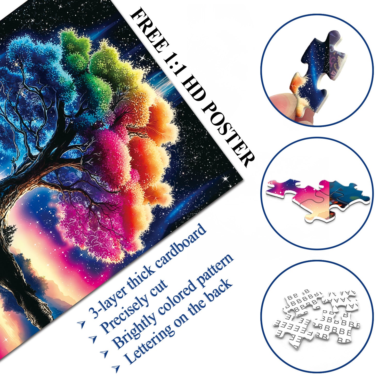 ⭐️【Quality and Craftsmanship】: Ultra-high-definition art printing; clear and three-dimensional details of the starry sky, light and shadow gradients, and tree textures; high-quality thickened puzzle board: sturdy and durable, resistant to deformation even after repeated assembly, ensuring a high degree of integrity and making it highly collectible.