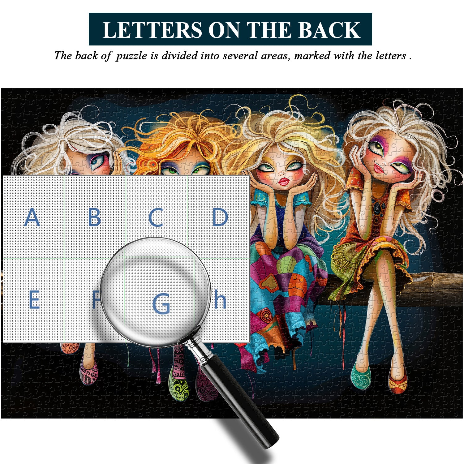 💄✨【Boho Girls】: This puzzle features four distinct girls with flowing blonde hair and colorful bohemian dresses. Each girl has a unique expression and clothing details: bright, contrasting patterns create a trendy, independent, confident, and slightly dreamy visual atmosphere.