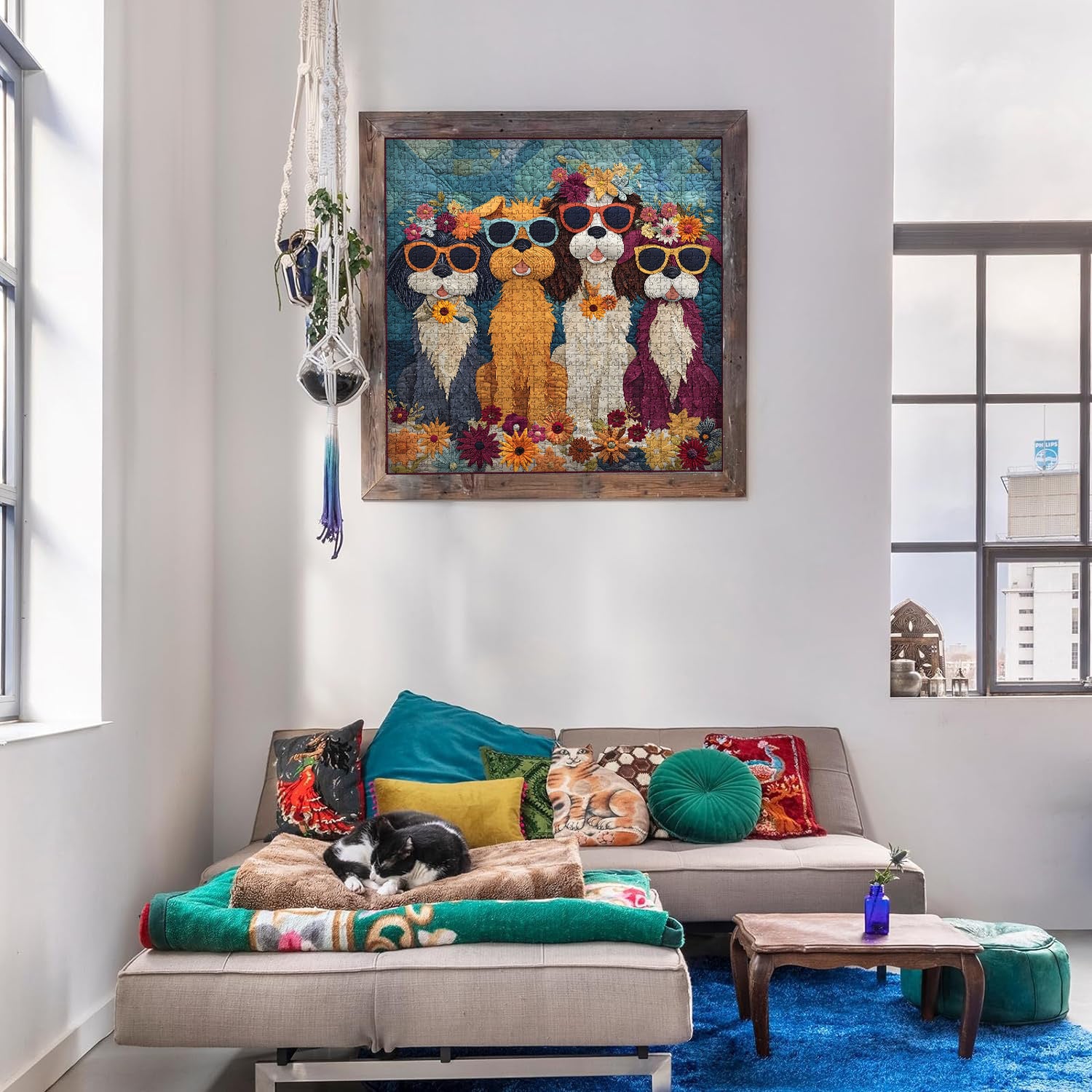 🐾🌼Puzzle di puzzoletta da cucciolo felice: Quattro adorabili cuccioli che indossano occhiali da sole e circondati da fiori creano un'atmosfera allegra, guarigione e vibrante. Ogni pezzo di puzzle ti consente di toccare la pelliccia dei cuccioli e la morbidezza dei fiori, permettendoti di sperimentare la gioia innocente degli adorabili animali domestici. Questo è un viaggio estetico immersivo e curativo.